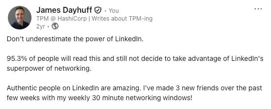 2 years ago, I shared this LinkedIn post about meeting 3 new people on LinkedIn and turning those digital connections into human connections.